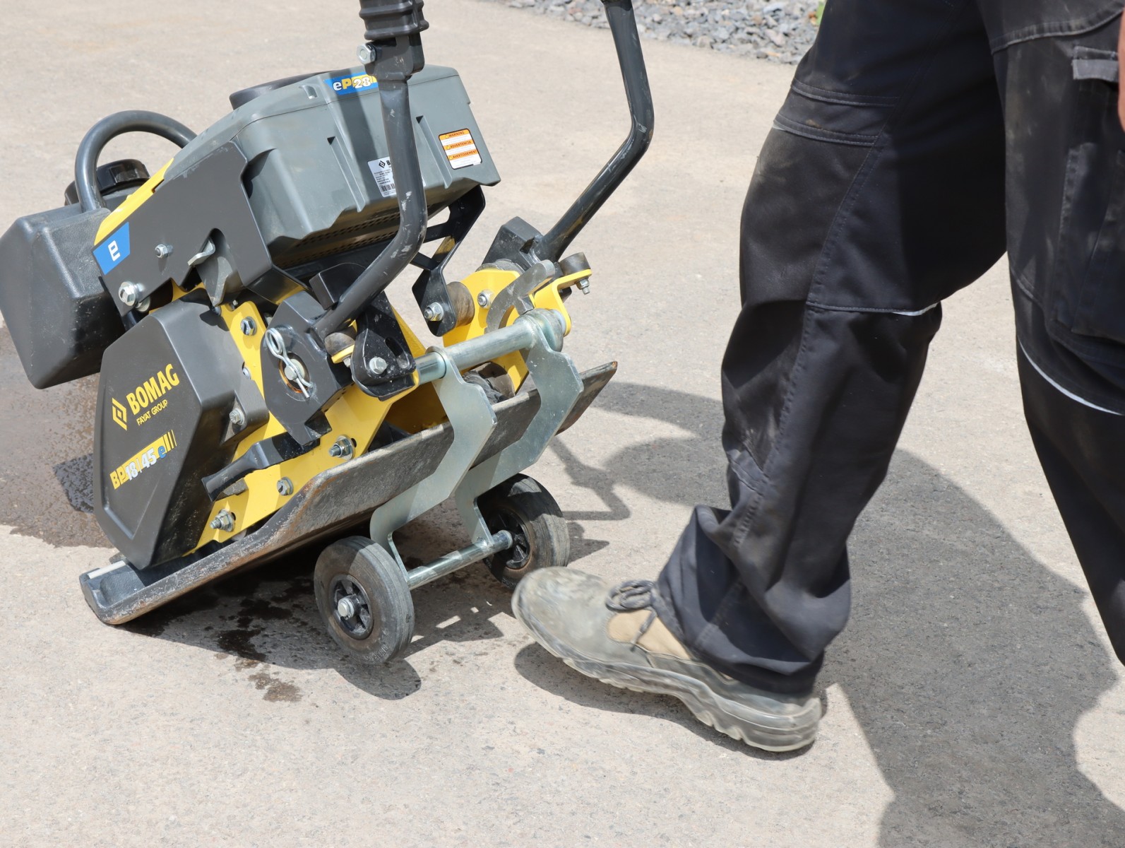 Električna vibracijska plošča: vsestranska pri zemeljskih delih, asfaltiranju in tlakovanju. Kompaktna električna vibracijska plošča BOMAG je pravi vsestranski stroj in se lahko uporablja za lahka zemeljska dela, asfaltiranje in tlakovanje. Stroj združuje desetletja izkušenj strokovnjakov iz BOMAG-a na področju učinkovite tehnologije stiskanja.